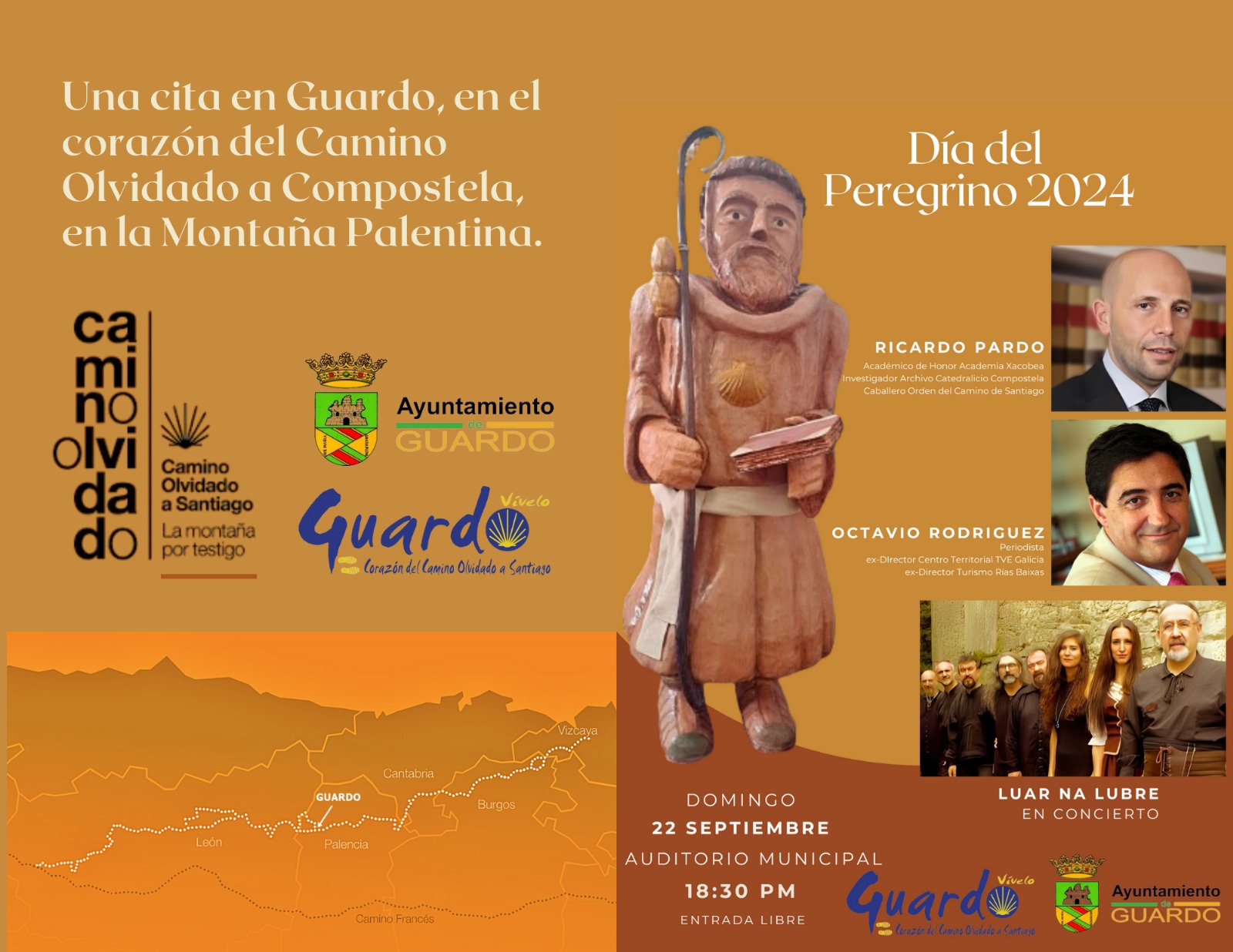 En un acto de exaltación del Camino Olvidado y de la diversidad de las rutas jacobeas celebrado el 22 de septiembre de 2024 en un abarrotado auditorio del Ayuntamiento de Guardo (Palencia), José Ricardo Pardo Gato fue nombrado “Peregrino de Honor 2024”.