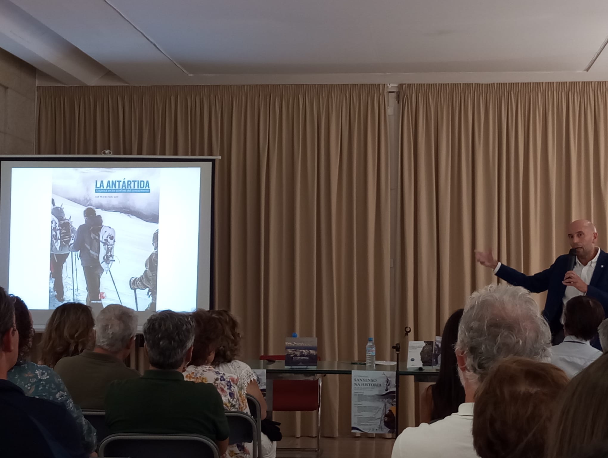 Tras impartir la conferencia “El Camino de Santiago desde los confines de la Tierra”, el homenajeado recibió de manos del alcalde de la localidad, Juan Jesús Blanco, la figura del apóstol que le acredita la concesión honorífica.